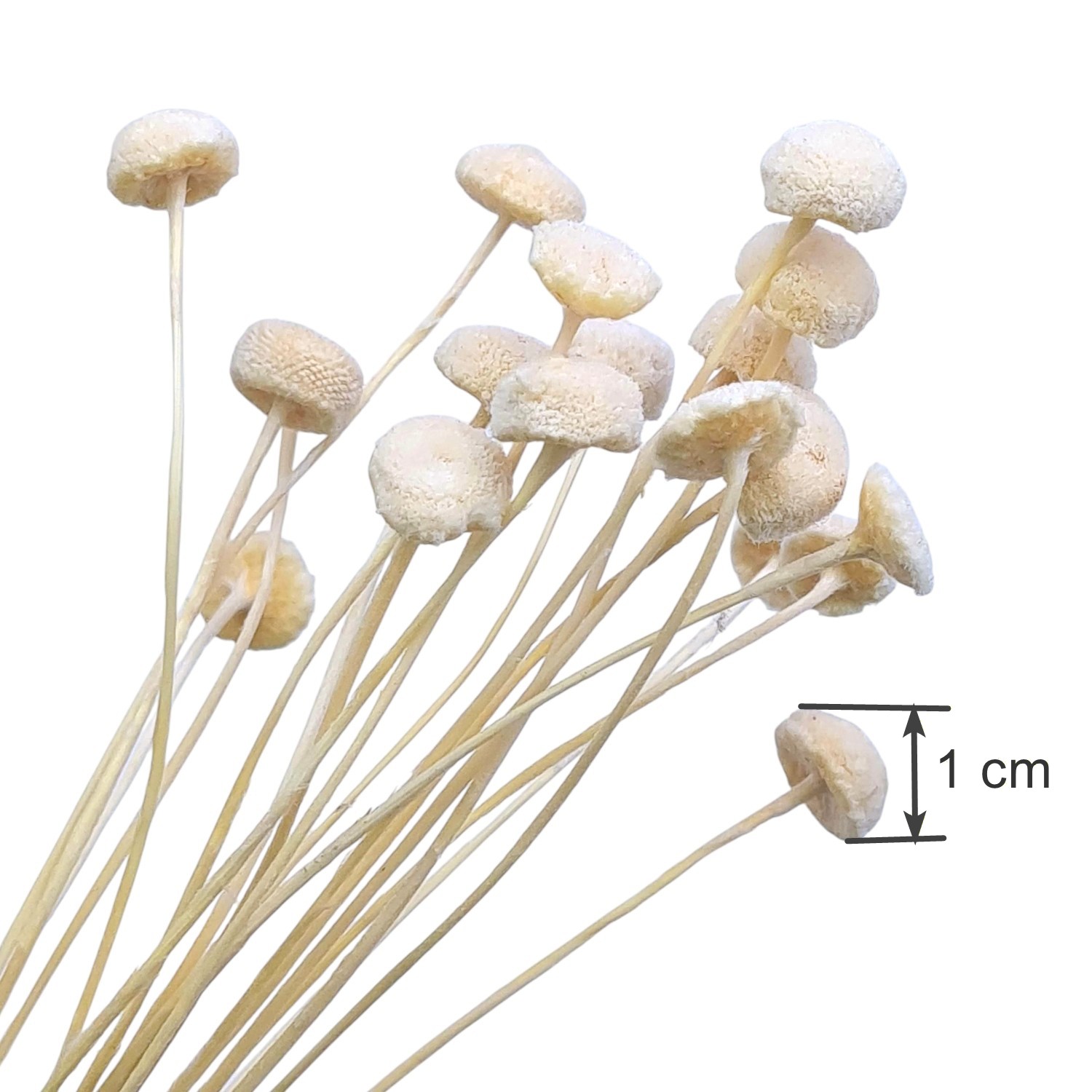Botao (Syngonanthus elegans) on siro luonnonmateriaali. Tässä nipussa on 20 kappaletta ohutvartisia kukkia, joiden latvassa on pieni, noin yhden senttimetrin kokoinen kukinto. Tämä erä on sekä valkaistu että stabiloitu, minkä tuloksena väri on kaunis, taitettu luonnonvalkoinen tai kermanvalkoinen (ei täysin puhtaanvalkoinen). Kaksoiskäsittelyn johdosta kukkien varret ovat erityisen pehmeitä ja joustavia. Ne eivät seiso täysin jäykän pystysuorassa, vaan asettuvat luonnollisen rennosti. Tämä ominaisuus tekee niistä erinomaisia laskeutuviin asetelmiin, kransseihin ja herkkään sidontaan, jossa haetaan elävyyttä.