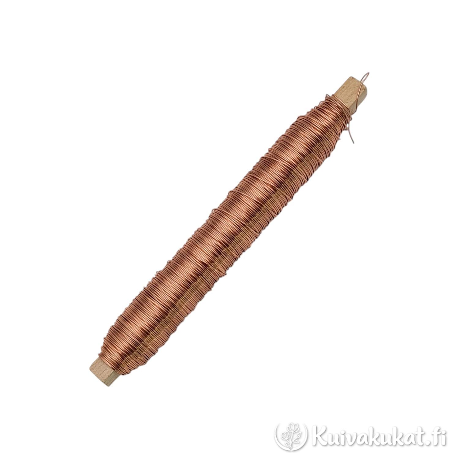 Koristepuolalanka on monikäyttöinen sidontatarvike, joka yhdistää käytännöllisyyden ja esteettisyyden. Tämä 0,5 mm vahvuinen lanka on riittävän ohutta taipumaan helposti kukkien varsien ympärille niitä vahingoittamatta, mutta tarpeeksi vahvaa pitämään materiaalit tukevasti paikoillaan. Lämmin metallinen kuparinsävy on suunniteltu jätettäväksi rohkeasti näkyviin osana valmista työtä, jolloin sidontalankaa ei tarvitse piilottaa materiaalien alle. Kompakti 100 gramman puola riittää useampiin kranssi- tai askarteluprojekteihin ja sopii hyvin käteen työskentelyn ajaksi.