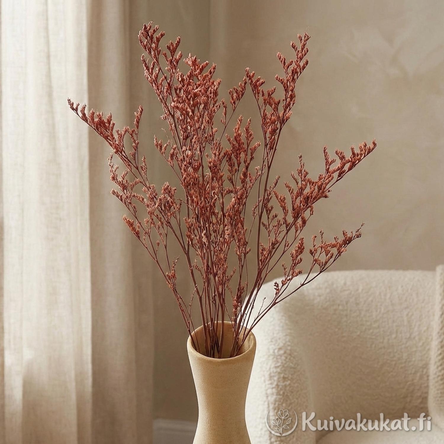 Lankaikiviuhko (Limonium bellidifolium) on rakenteeltaan ilmava ja haarova kasvi, jota käytetään floristiikassa tuomaan sidontatöihin keveyttä ja tilavuutta ilman massiivisuutta. Tämä tuote on stabiloitu, mikä tarkoittaa, että kasvi on käsitelty säilyttämään joustavuutensa ja luonnollisen muotonsa paremmin kuin perinteisesti kuivatut materiaalit.